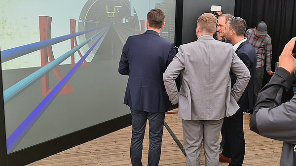 Während der Veranstaltung vom 15. Juli vertrat Uwe Wössner das HLRS in Glückstadt und stellte den Teilnehmenden erstmals den digitalen Zwilling von ElbX vor. Die Gäste erhielten vor Ort in virtueller Realität Einblick in die Baupläne für den Tunnel und das Betriebsgebäude und konnten somit vor Baubeginn Eindrücke des zukünftigen Bauwerks erhalten.