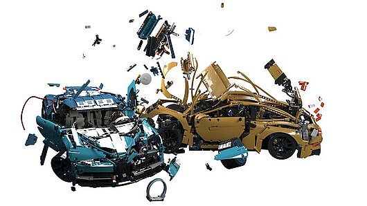 The scientists created extremely high-resolution digital models of two LEGO cars — a Porsche and a Bugatti — in which every LEGO block is composed of thousands of reference points. In total, the model of the two vehicles comprised approximately 45 million finite elements, which is approximately the same number used in developing crash test models for real automobiles. To create the model, these data are then combined with a mathematical framework that describes the physical stresses at work on the vehicles during a crash.